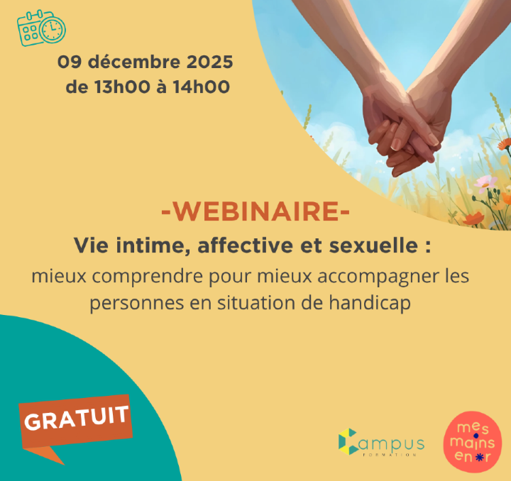 Ce webinaire propose un espace de réflexion et d’échange autour de ces enjeux, afin de mieux comprendre comment soutenir l’épanouissement des personnes en situation de handicap dans cette dimension essentielle de leur vie.